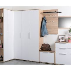 Дизайн изделий различается. Отделка выполнена при помощи МДФ-панелей или порошково-полимерного покрытия. Выбирайте подходящий цвет: чёрный муар, венге, белый ясень — вариантов немало. Есть двери, с внутренней стороны которых установлено зеркало. Это удобно: его не придётся устанавливать в прихожей отдельно. Также подобные решения визуально расширяют пространство в коридоре.