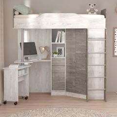 Кровать-чердак Бриз-1 УНИ (Камень тёмный/Бетон светлый)