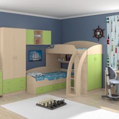 Набор мебели для детской комнаты "Соня" включает необходимые предметы обстановки для спальни двух детей. Такой уголок экономит пространство в детской комнате.
