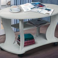 Красивый журнальный столик "Сатурн-М05", отличающийся оригинальным дизайном и функциональностью. Благодаря компактному размеру он не занимает много места и хорошо вписывается в интерьеры разного типа. Его овальная столешница, небольшая прямоугольная полка и фигурное основание соединяются изогнутыми плоскими ножками. Для удобного передвижения столика с одного места на другое его основание оснащается прочными колёсными опорами.